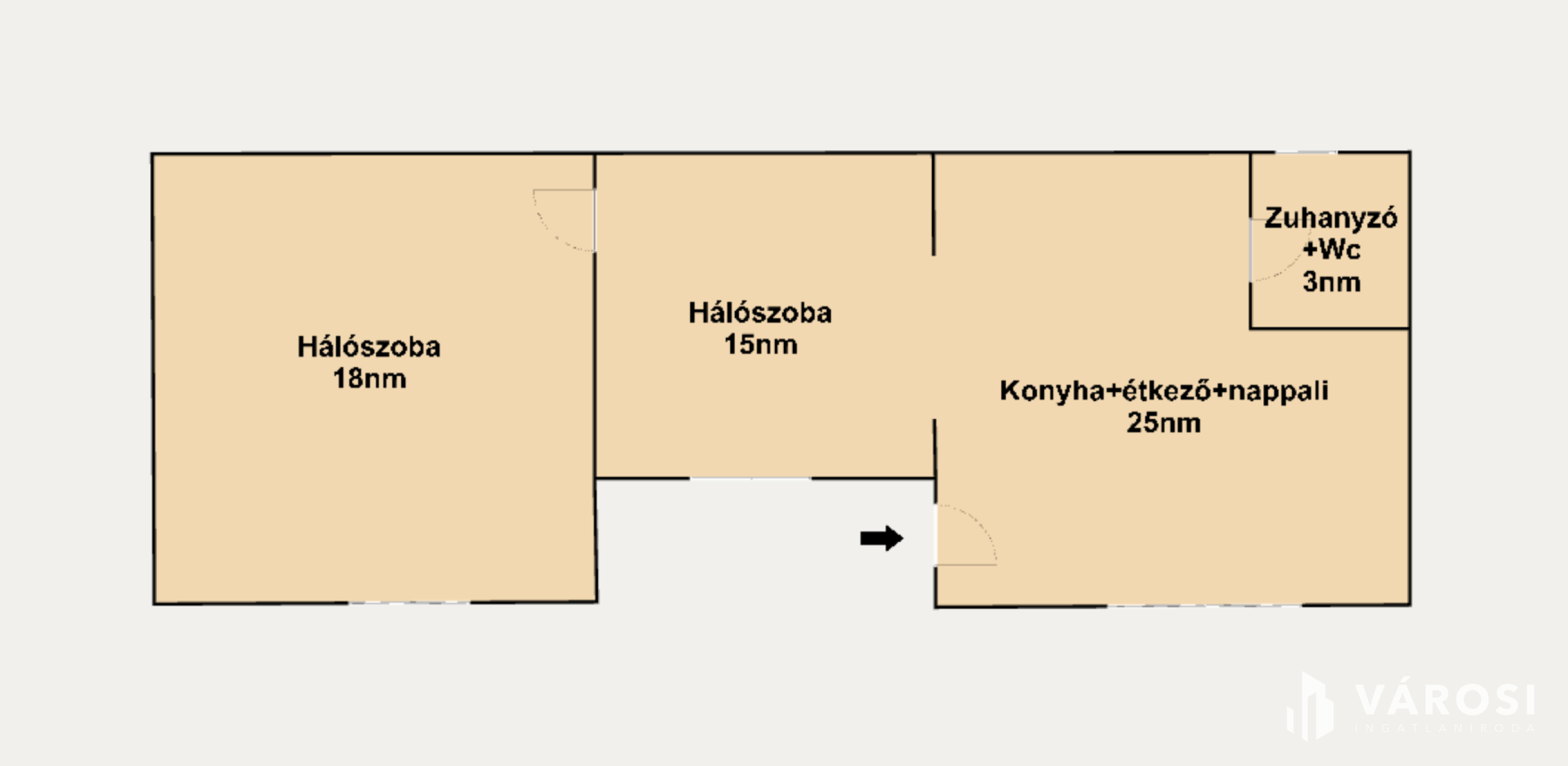 Az utcafronti épületben egy előszoba, egy konyha, egy tágas nappali-étkező, 2 hálószoba és egy zuhanyzós fürdőszoba található. Ebben a lakóegységben hő- és hangszigetelt nyílászárók kerültek beépítésre, valamint hűtő-fűtő klímával felszerelt, amely a nyári hónapokban is kényelmessé teszi az itt tartózkodást. A külső hőszigetelés tovább csökkenti a fenntartási költségeket.