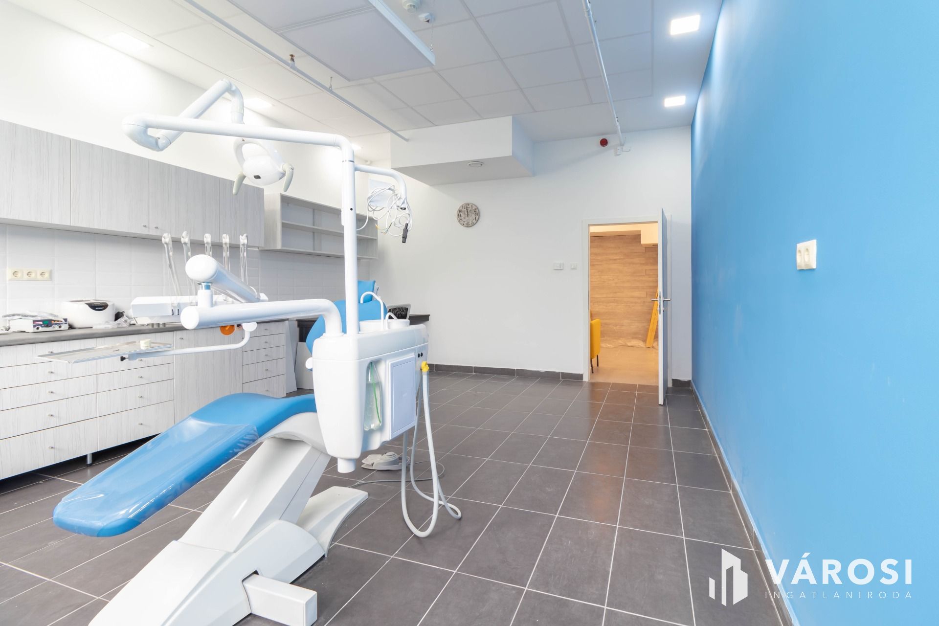 A komplexumban egymás mellett 6 rendelő kiadó, ez a rendelő 25 m2 alapterületű, teljesen felszerelt, Optimal 09 kezelőegységgel, fogászati eszközökkel és rendelői bútorzattal ellátott.