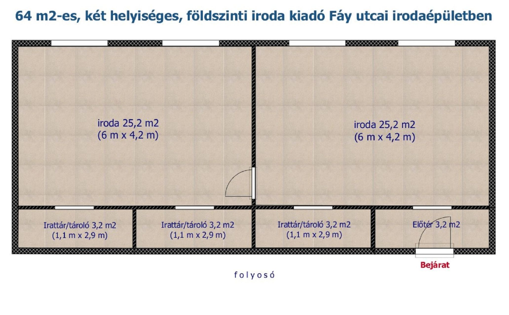 64 M2-ES, KÉT HELYISÉGES, FÖLDSZINTI IRODA KIADÓ FÁY UTCAI IRODAÉPÜLETBEN