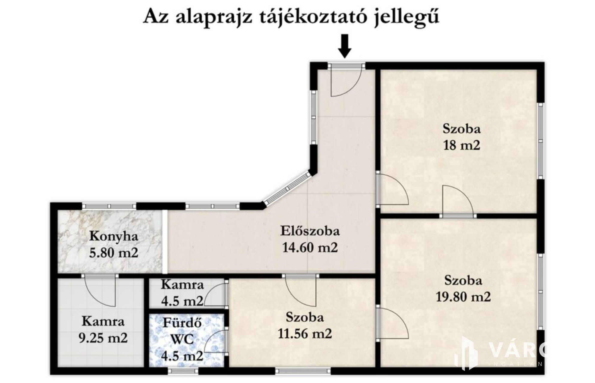 Az ingatlan elrendezése praktikus: nappali, két hálószoba, konyha–étkező, fürdőszoba, kamra és előszoba alkotja a belső tereket. Az egyik kamra akár plusz szobává is alakítható, így az otthon igény szerint bővíthető.