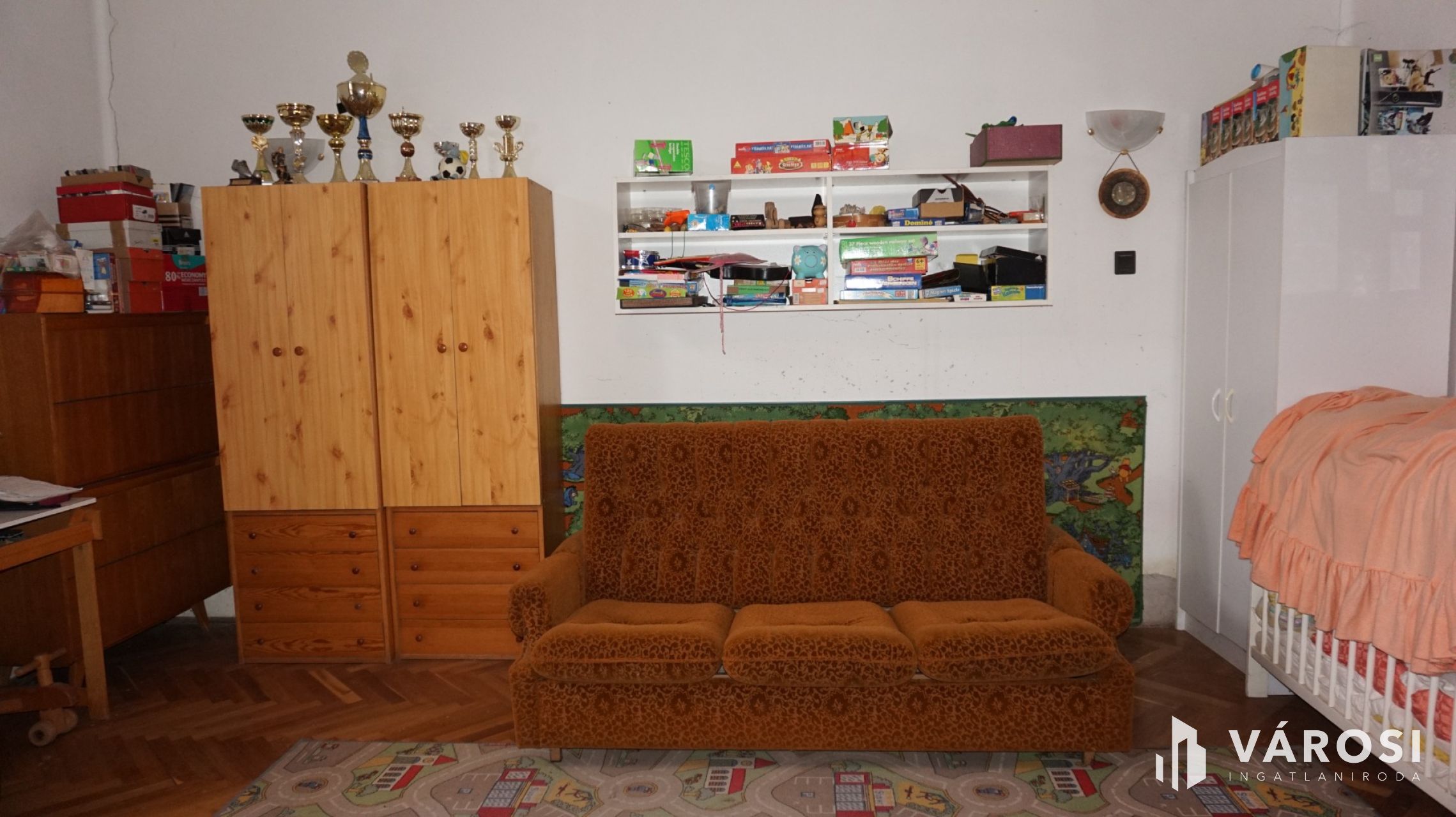 -30 m2-es szoba régi fa padló, 25 m2-es szoba parkettás, 11 m2-es szoba laminált padlós