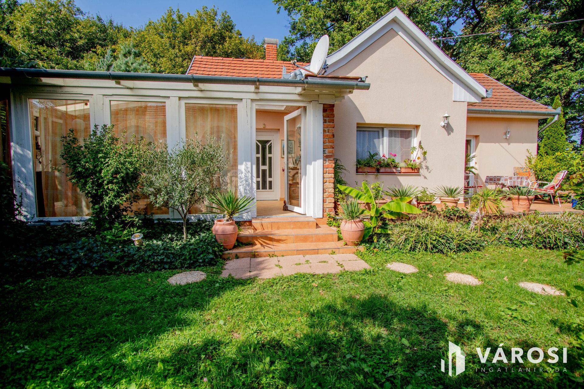 Az udvara gyönyörűen parkosított, egyik oldalról erdő öleli át és a telek hátsó fele is csodás erdős, romantikus hangulatú, itt a romantika garantált.