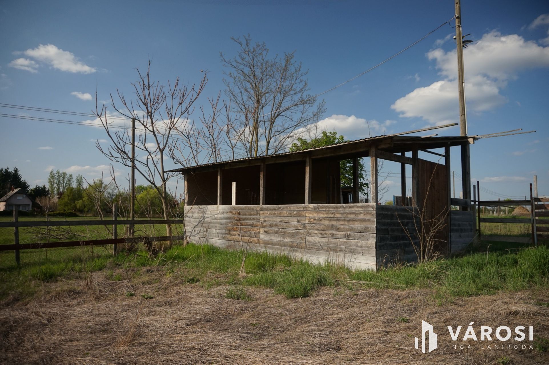 A 2625 négyzetméteres teljesen elkerített területen található egy nemrég épült istálló és egy könnyűszerkezetes házikó.