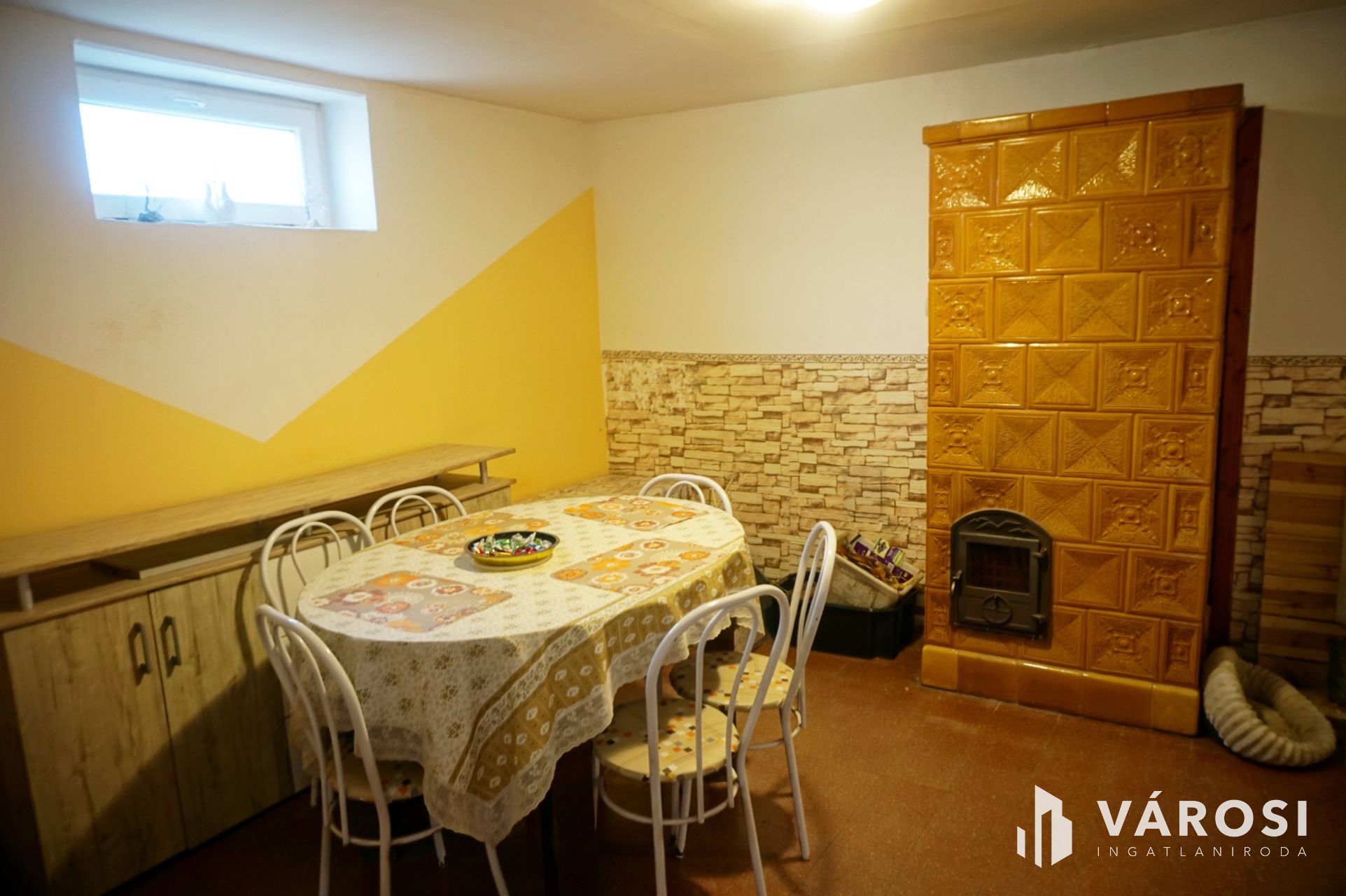 A fűtés gázról konvektorokkal üzemel, de van lehetőség egy hangulatos cserépkályha használatára is.