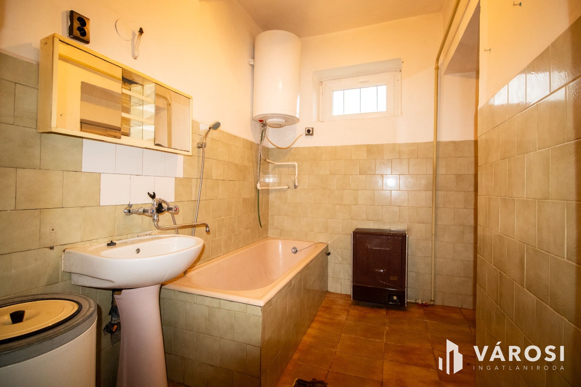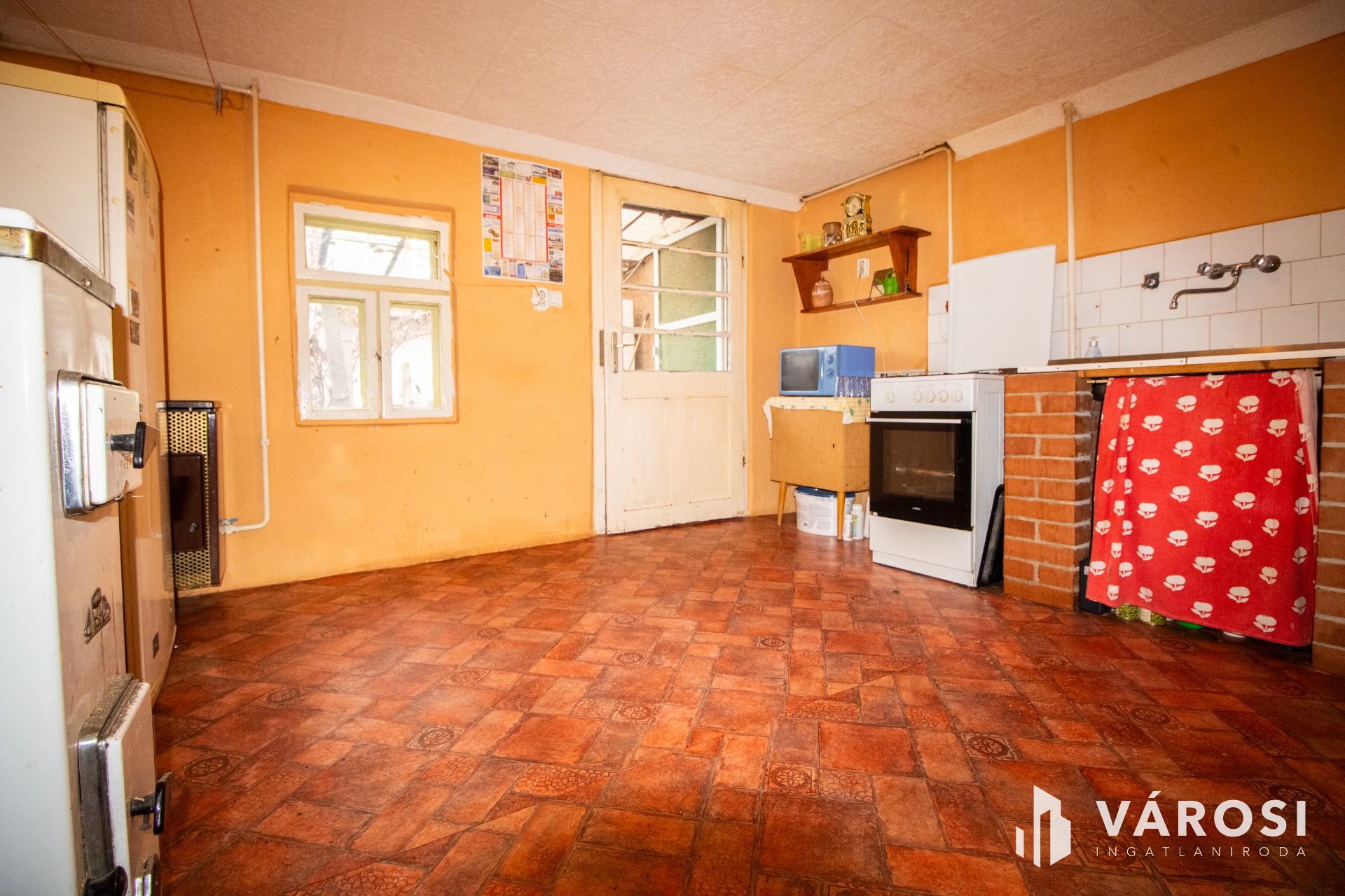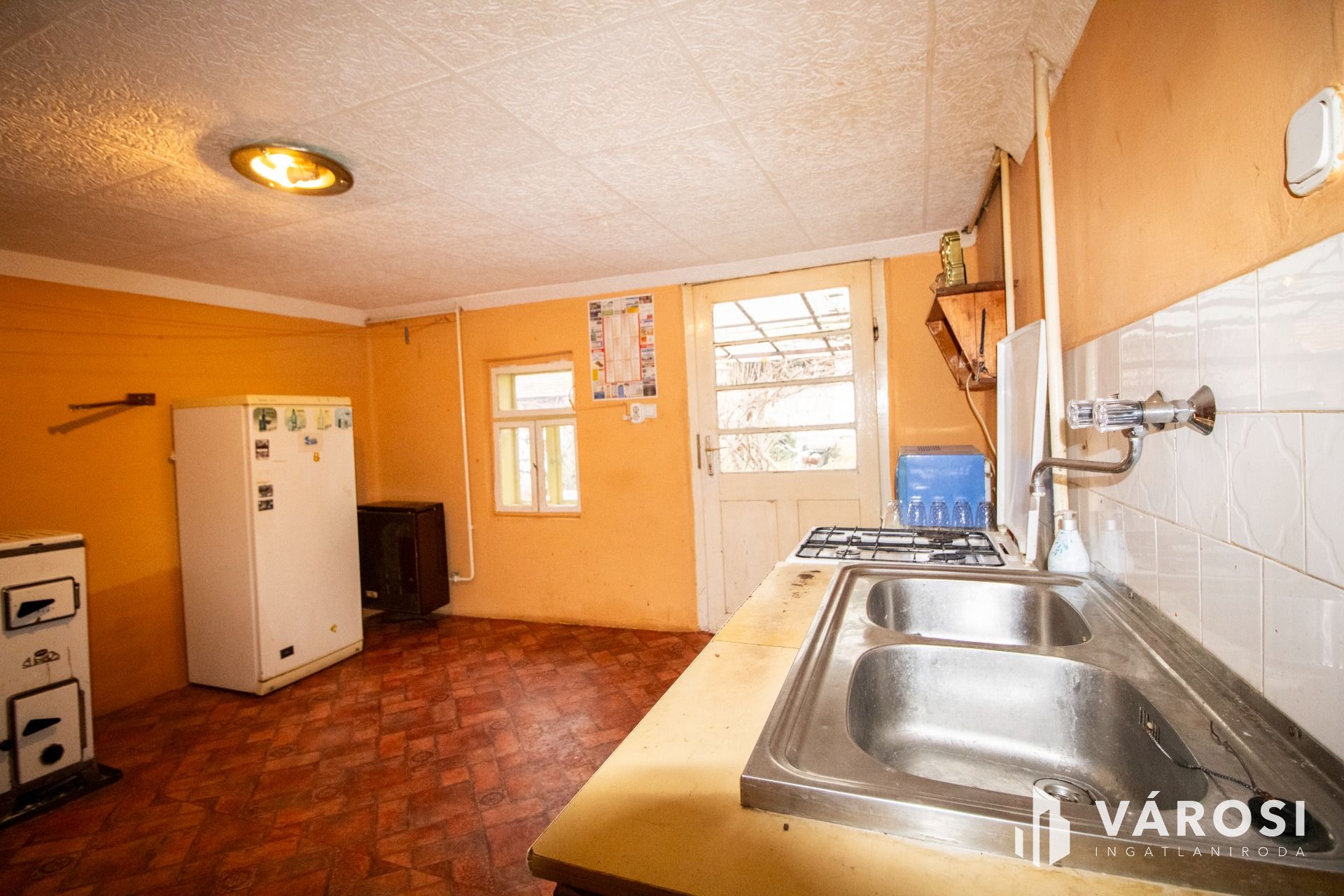 Az előszobából nyílik a 3 szoba. A kádas fürdőszoba villanybojlerrel felszerelt, a mellékhelyiség külön helyiségben található. A konyha-étkező tágas, innen egy második bejáraton keresztül a hátsó udvar is közvetlenül megközelíthető, ami a mindennapokban kifejezetten kényelmes megoldás. A kamra hasznos tárolóteret biztosít, a kb. 6 négyzetméteres fedett terasz pedig kellemes átmenetet képez a lakótér és a kert között.