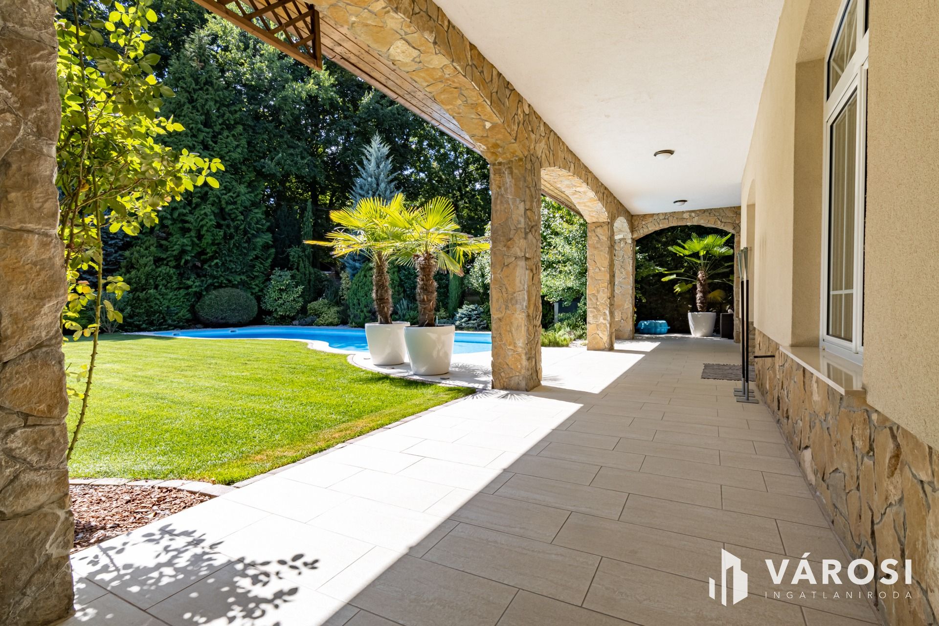 Gyönyörűen parkosított 1163 m2-es kertben, 426 m2 össz alapterületű, medencével, dupla garázzsal, kerti társasági sarokkal, nagy teraszokkal rendelkező, hatalmas belső terekkel, klimatizálva, padlófűtéssel, a képeken látható teljes berendezéssel, igényes kivitelezéssel épült mediterrán típusú ingatlan várja új tulajdonosát.