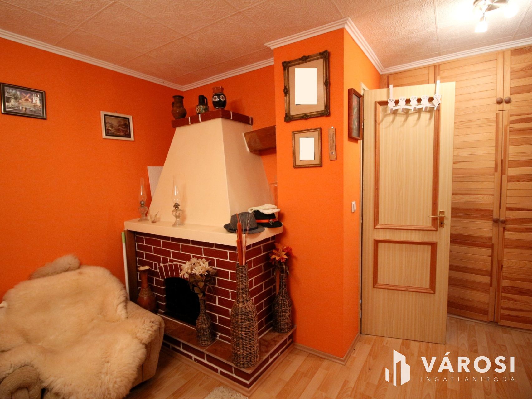 Az emeleti szinten egy kandalló szolgálja a fűtést és a kellemes hangulatot.