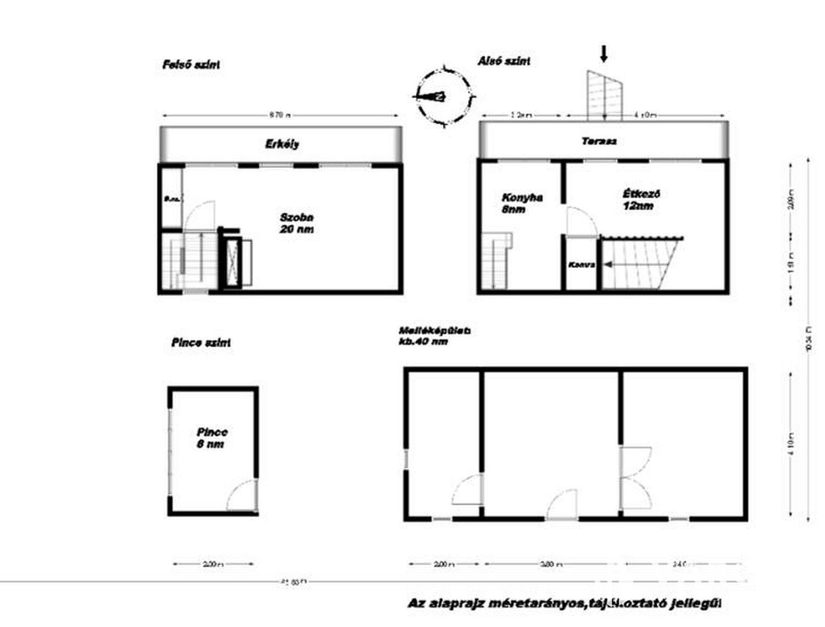Az épület alatt egy szoba méretű pince helyiség található. Mivel ez az étkezőből egy fa lépcsőn közelíthető meg,így akár a lakótér bővítésére is lehetőséget ad.