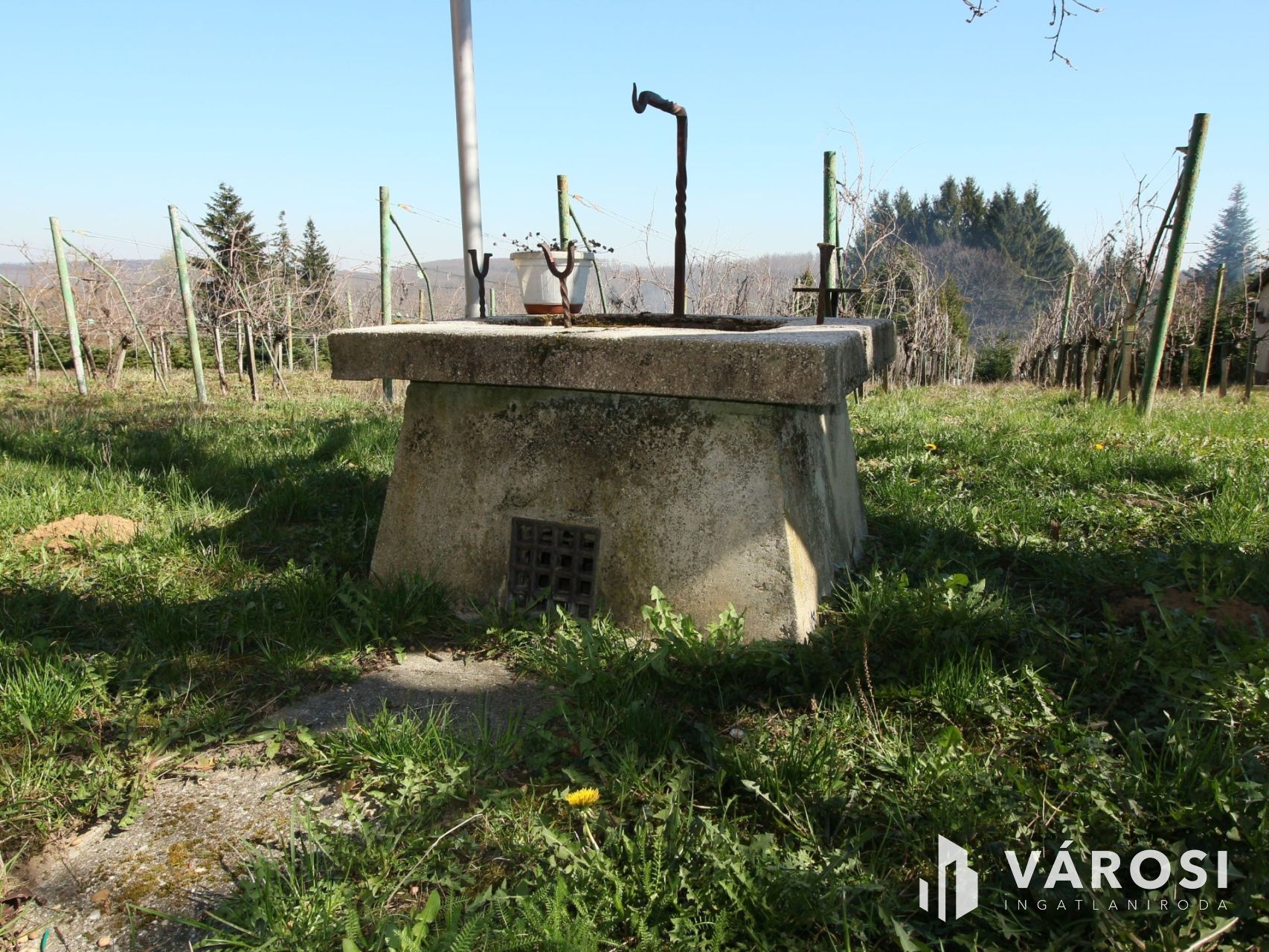 A telek kb. 220 m. hosszú és 30 m. széles. A legalsó részét 1976-ban telepített fenyves erdő foglalja el. Végén egy patakkal és forrással.
