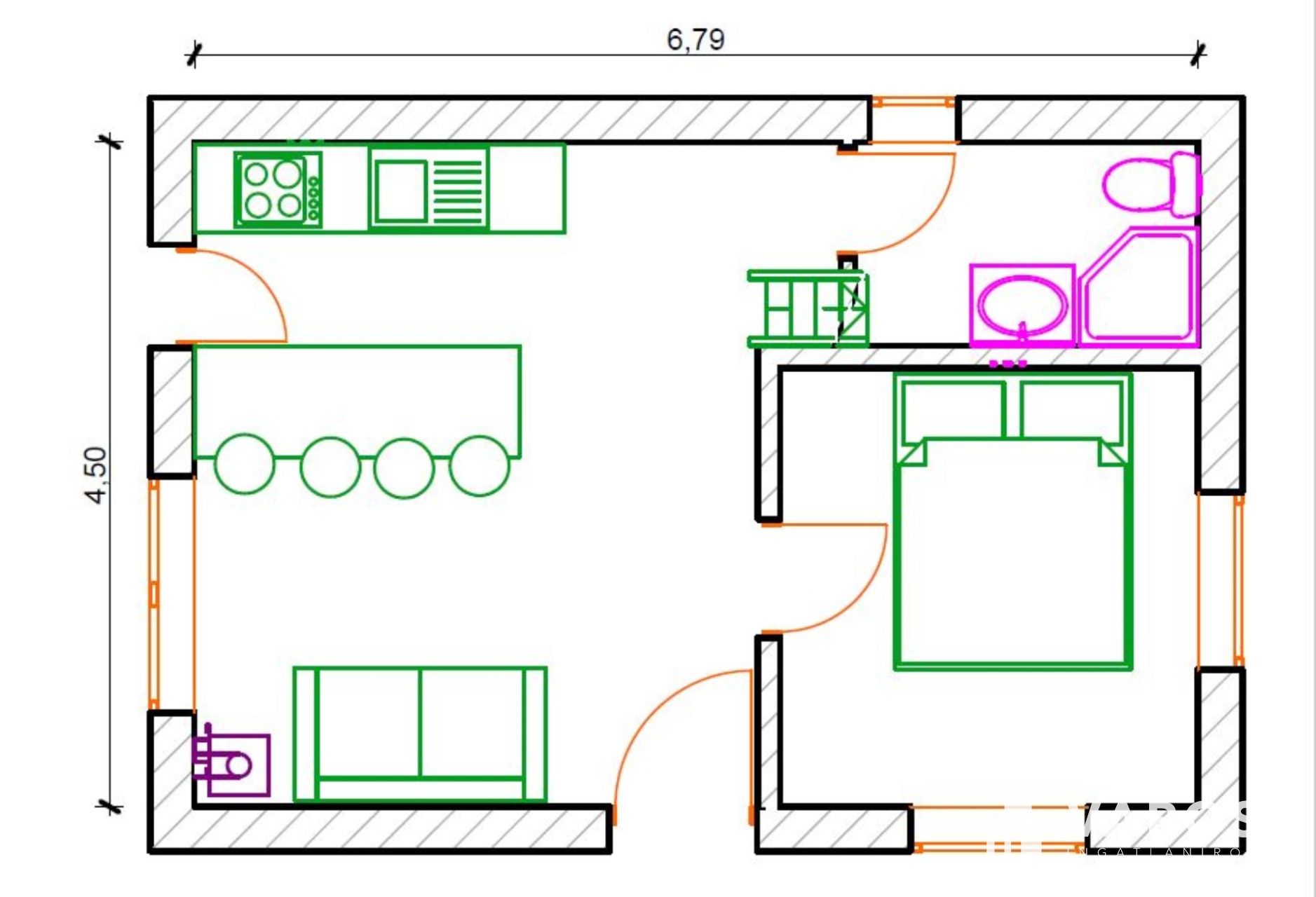 • Földszint: amerikai konyhás nappali, egy hálószoba, zuhanyzós fürdőszoba