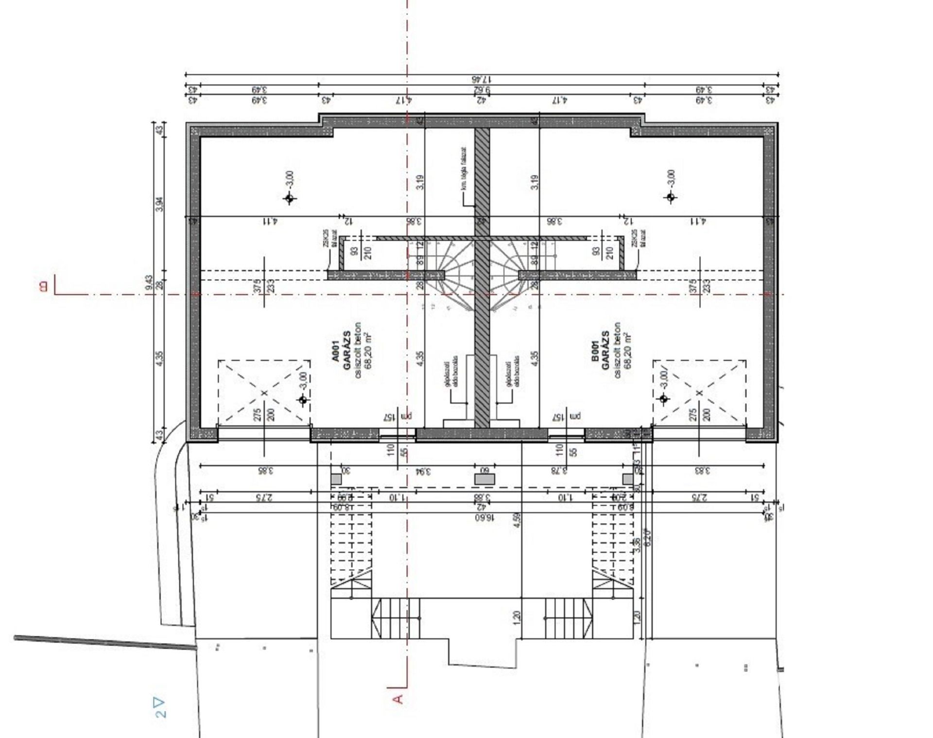 - Tető: Betoncserép héjazat, színezett acéllemez csatornarendszer a csapadékvíz elvezetésére.